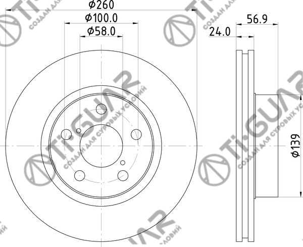Диск тормозной /передний /левый /ПЕРФОРИРОВАННЫЙ /TI-GUAR для SUBARU Legasy B#1989-2003, Impreza G# 1992-2007; 260/24мм; TG-26300-AE091; RN1091V 0986478293 09567311