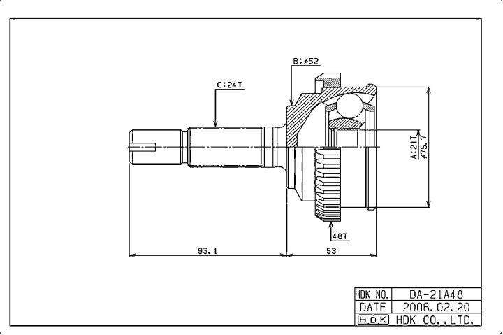 ШРУС наружный / правый левый HDK для Daihatsu Charade 1993-200000; 21*52*24; DA-021A48; 4341087788 DA021A48 DH21A48
