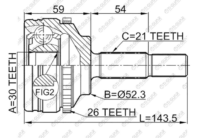 ШРУС наружный / правый /левый /TI-GUAR для Renault Logan Clio II Kangoo 1998-2005; 30*52.3*21; TG-8201Z26; (2410-LOGA26) 7700110484 CO6304A JCT0115A